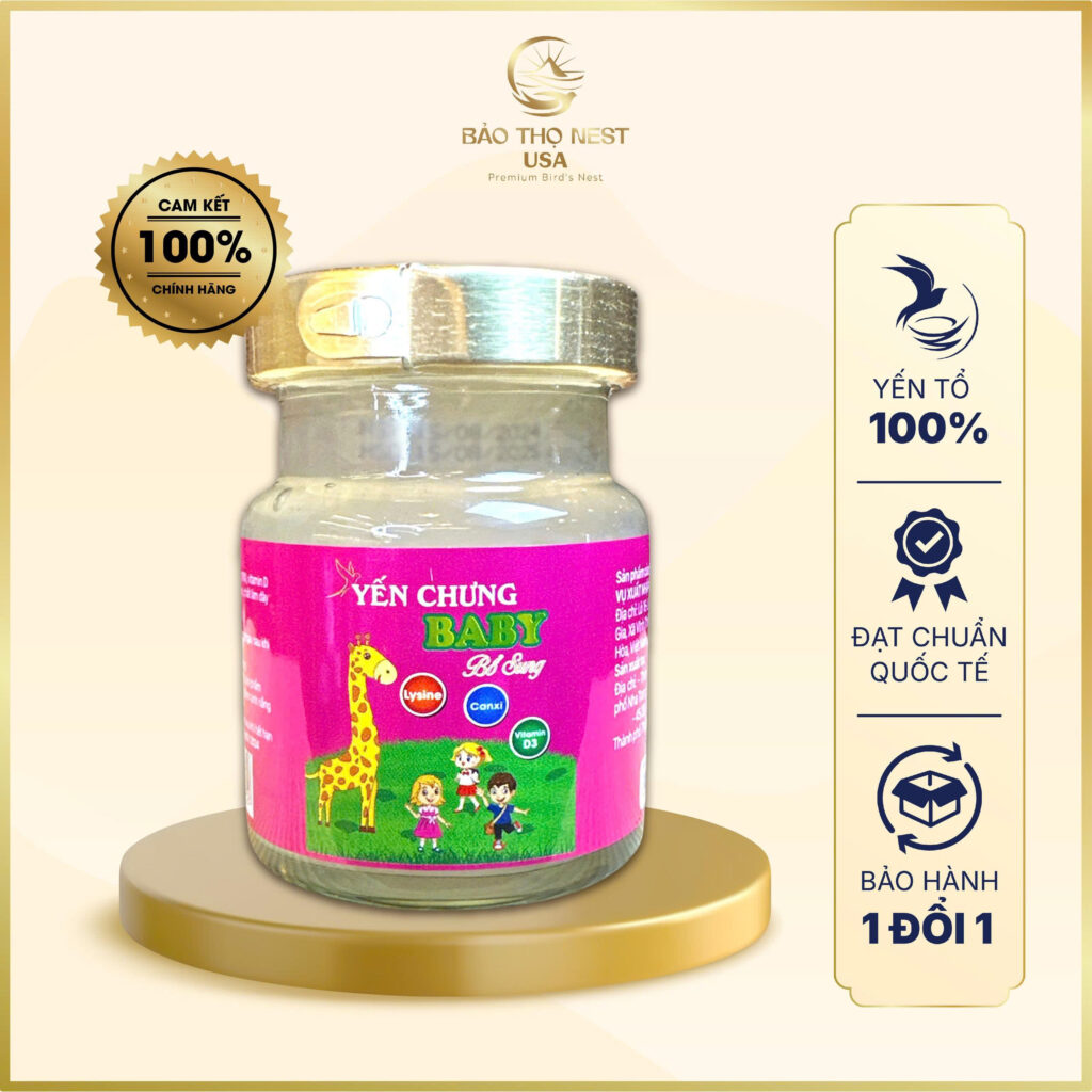 Baby Bird’s Nest In Jar is a convenient nutritional supplement for modern lifestyles. Each jar contains 100% pure bird’s nest, meticulously cleaned by skilled artisans to remove impurities. Designed to support children’s comprehensive development, Baby Bird’s Nest In Jar is an optimal choice, providing high nutritional value and essential energy to help children stay healthy every day.