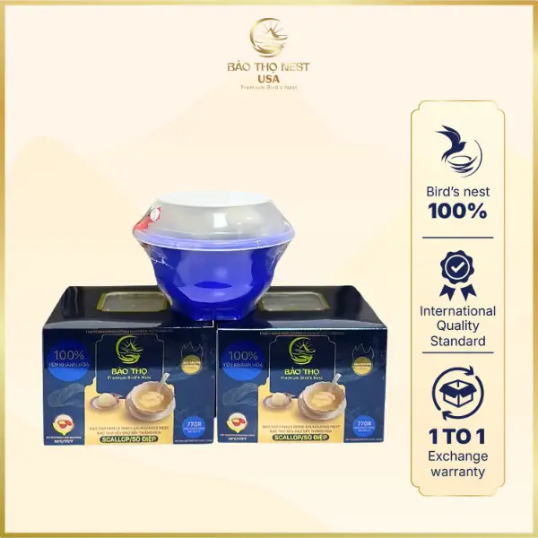 Bat Tran Self-Boiling Bird’s Nest with Scallops is the ultimate premium choice for modern life, ensuring energy-filled days. The name “Bat Tran” signifies a royal delicacy, symbolizing supreme quality and nourishment.