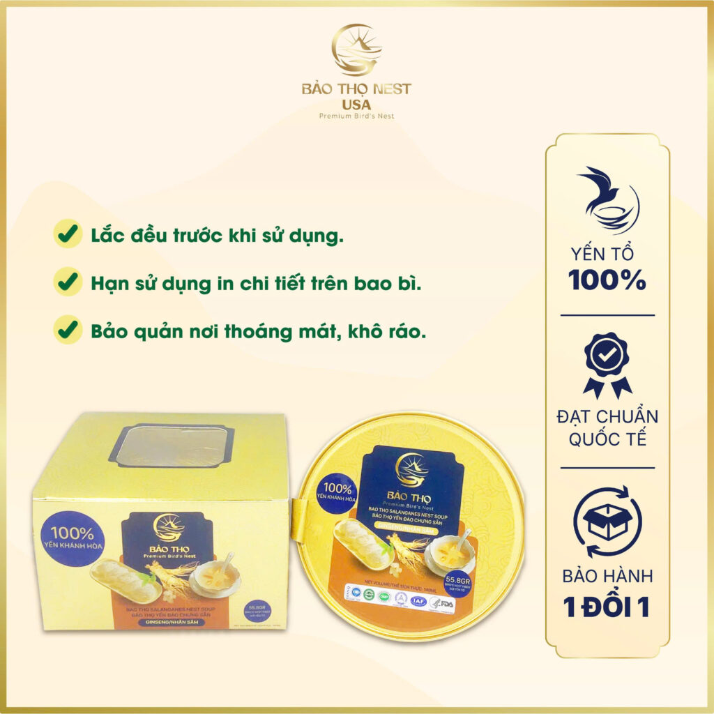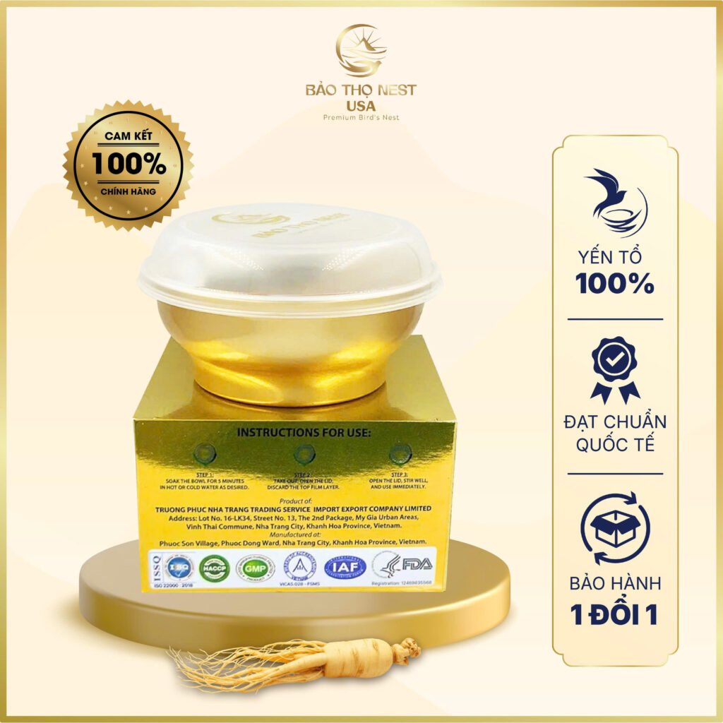 Bao Tho Nest USA’s Golden Bird’s Nest Bowl with Ginseng was created with the goal of becoming a premium health supplement. In cultural symbolism, a “golden bowl” represents luxury, signifying that this product is meticulously selected and refined before reaching customers.