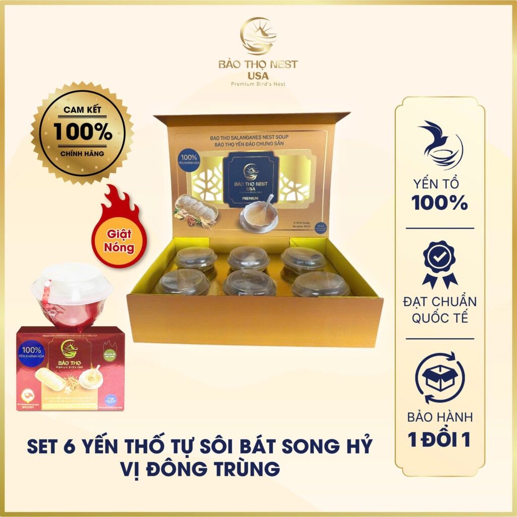Song Hy Self-Boiling Bird’s Nest Bowl with Cordyceps by Bao Tho Nest USA is an essential delicacy for modern living. Made from 100% pure bird’s nests, carefully cleaned and processed using advanced freeze-drying technology, this premium product guarantees absolute safety while preserving its exceptional nutritional value.