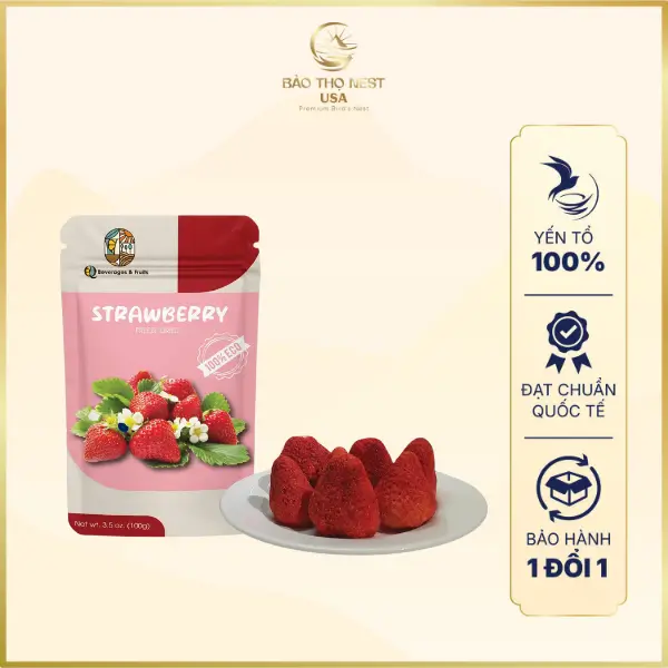Dâu Sấy Thăng Hoa Bảo Thọ Nest USA là món ăn vặt giúp bổ sung năng lượng nhanh chóng cho cơ thể. Không chỉ vậy, nhờ áp dụng công nghệ sấy tiên tiến từ nước ngoài, mỗi miếng Dâu Sấy vẫn giữ trọn hương vị ngọt thanh vốn có và kích thích vị giác nhờ độ giòn tan đạt đến mức lý tưởng.
