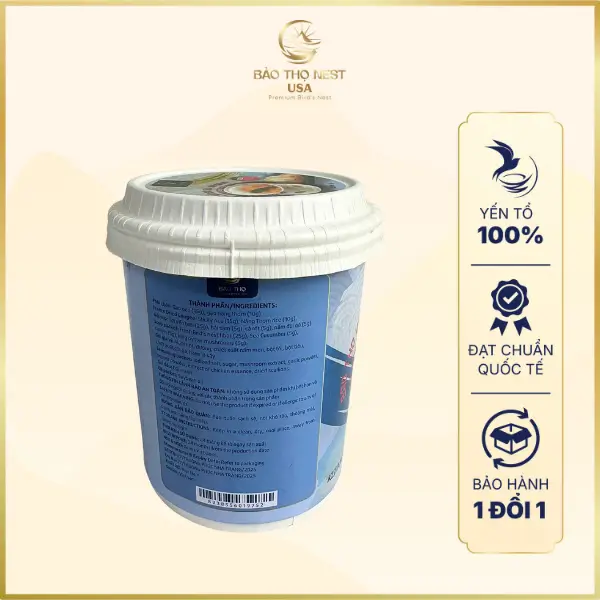 Súp Tổ Yến Vị Hải Sâm Bảo Thọ Nest USA được làm từ những tổ yến tươi nguyên chất, kết hợp với hương vị thơm ngon của hải sâm, mang đến món súp không chỉ bổ dưỡng mà còn thoả mãn vị giác. Sản phẩm được sản xuất trên dây chuyền khép kín, đảm bảo an toàn và giữ được hương vị nguyên bản.