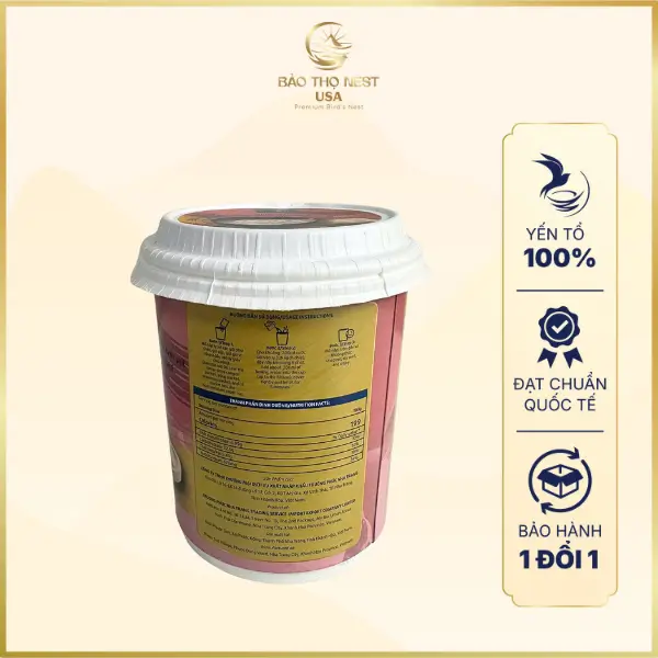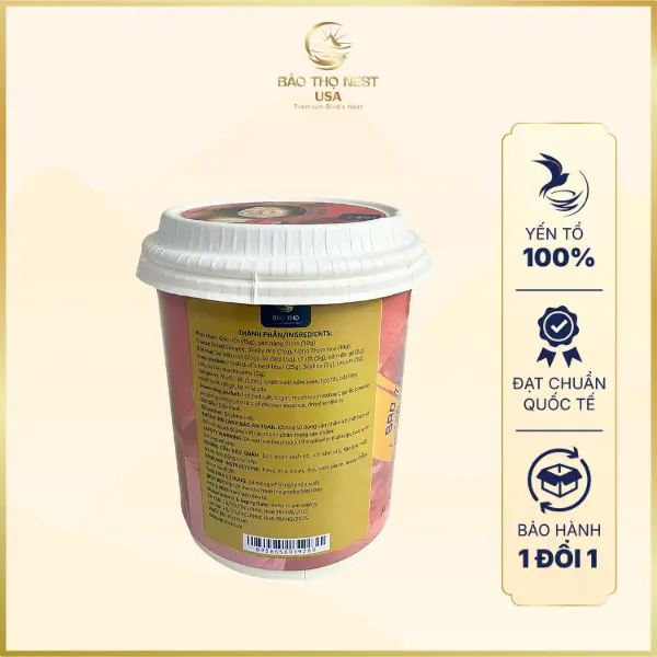 - Sản phẩm đã có chứng chỉ ISO 22000:2018, đạt tiêu chuẩn GMP (TCVN 5603:2023) và được cấp giấy phép kinh doanh yến sào hợp pháp.