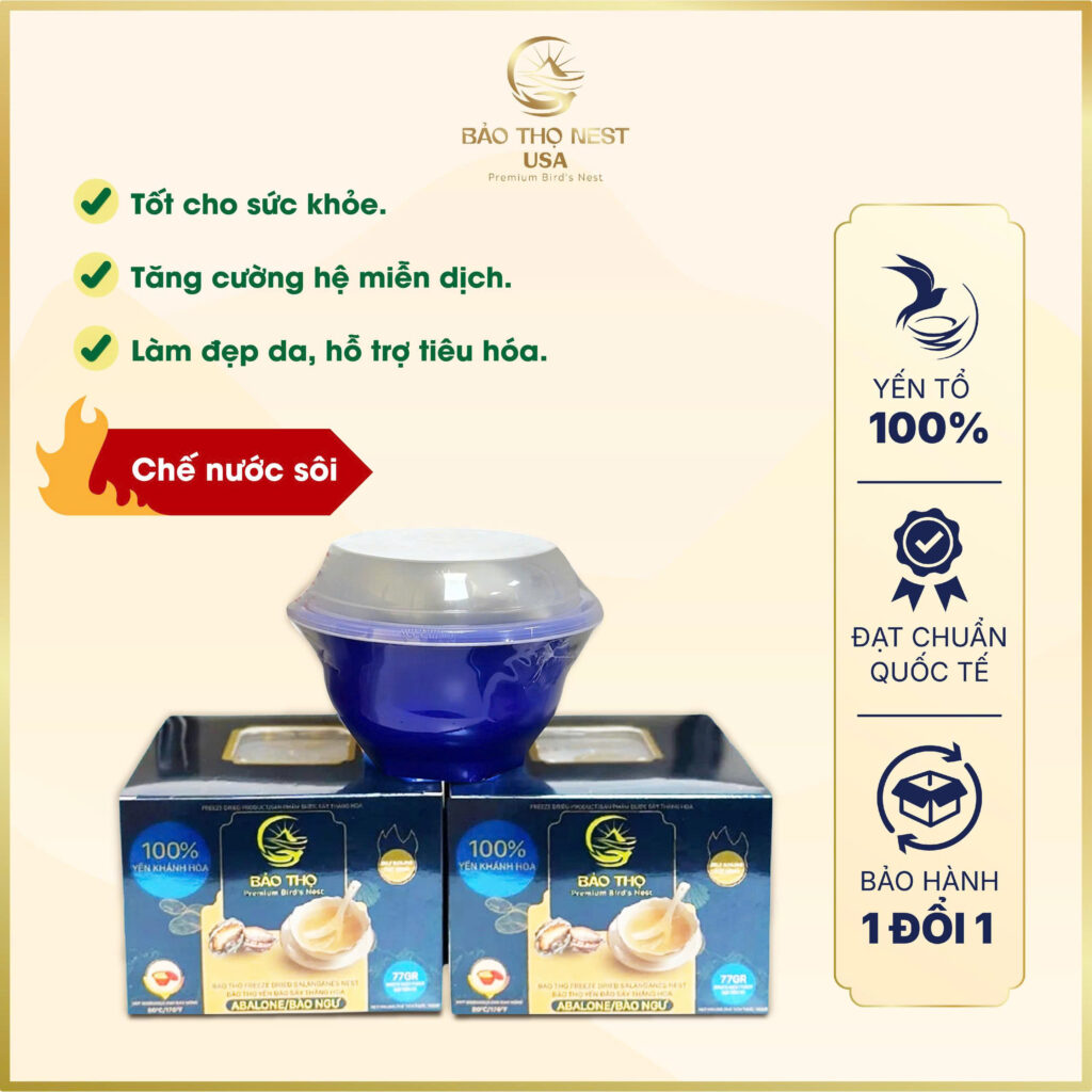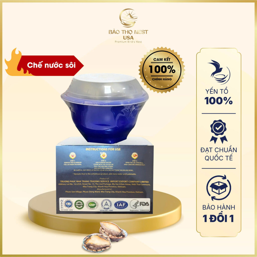 Yến Bát Chế Nước Sôi Bát Trân Vị Bào Ngư Bảo Thọ Nest USA là lựa chọn cao cấp cho cuộc sống hiện đại để mỗi ngày đều tràn đầy năng lượng. Tên gọi “Bát Trân” ngụ ý sản phẩm chính là món ăn thượng hạng dành tặng sức khỏe, xứng tầm với cao lương mĩ vị của vua chúa thời xưa.