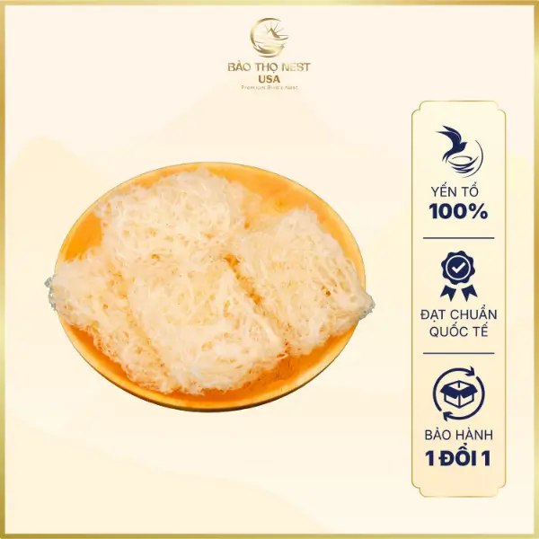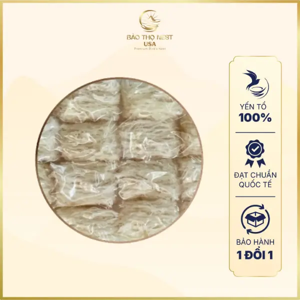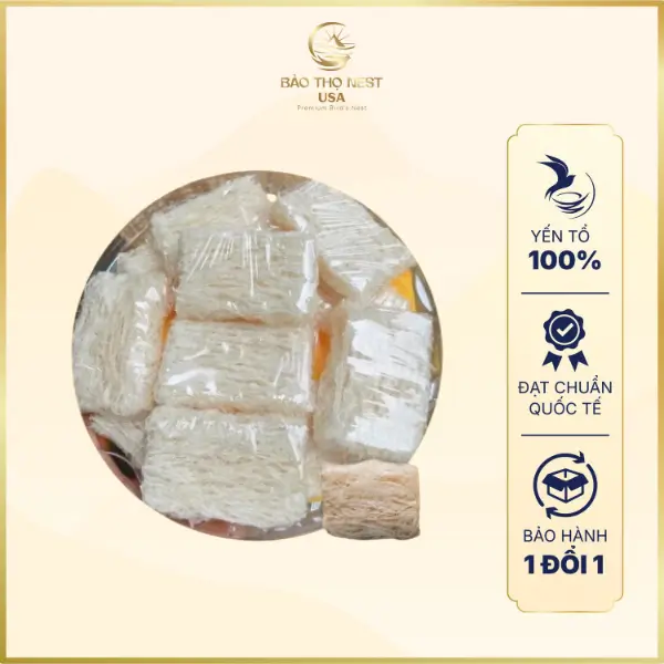Yến Đắp Tổ Vuông Bảo Thọ Nest USA là sản phẩm tổ yến nguyên chất 100% đã được nhặt sạch lông và các tạp chất, được xử lý và đóng gói trên dây chuyền áp dụng công nghệ hiện đại, từ đó cho ra đời những tổ yến bảo toàn dưỡng chất và màu sắc tự nhiên của yến tươi nguyên chất.