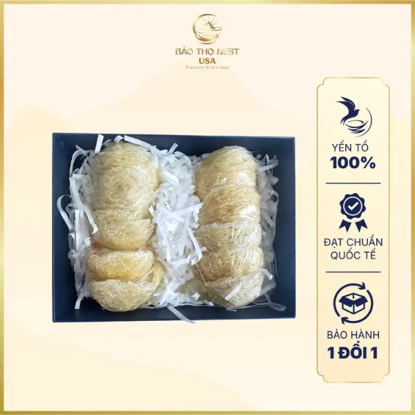 Yến Rút Lông Hồng Bảo Thọ Nest USA, được chế biến từ các sợi tổ hồng yến thô sau đó được tái định hình thành dạng tổ yến nguyên vẹn và sấy khô, đảm bảo giữ nguyên giá trị dinh dưỡng. Với hương vị thơm ngon và độ dai tự nhiên, phù hợp để chế biến các món nước yến, chè, súp bổ dưỡng. Sản phẩm không chứa chất bảo quản, an toàn tuyệt đối cho sức khỏe. Lựa chọn hoàn hảo để bồi bổ cơ thể và làm quà tặng ý nghĩa cho người thân yêu!