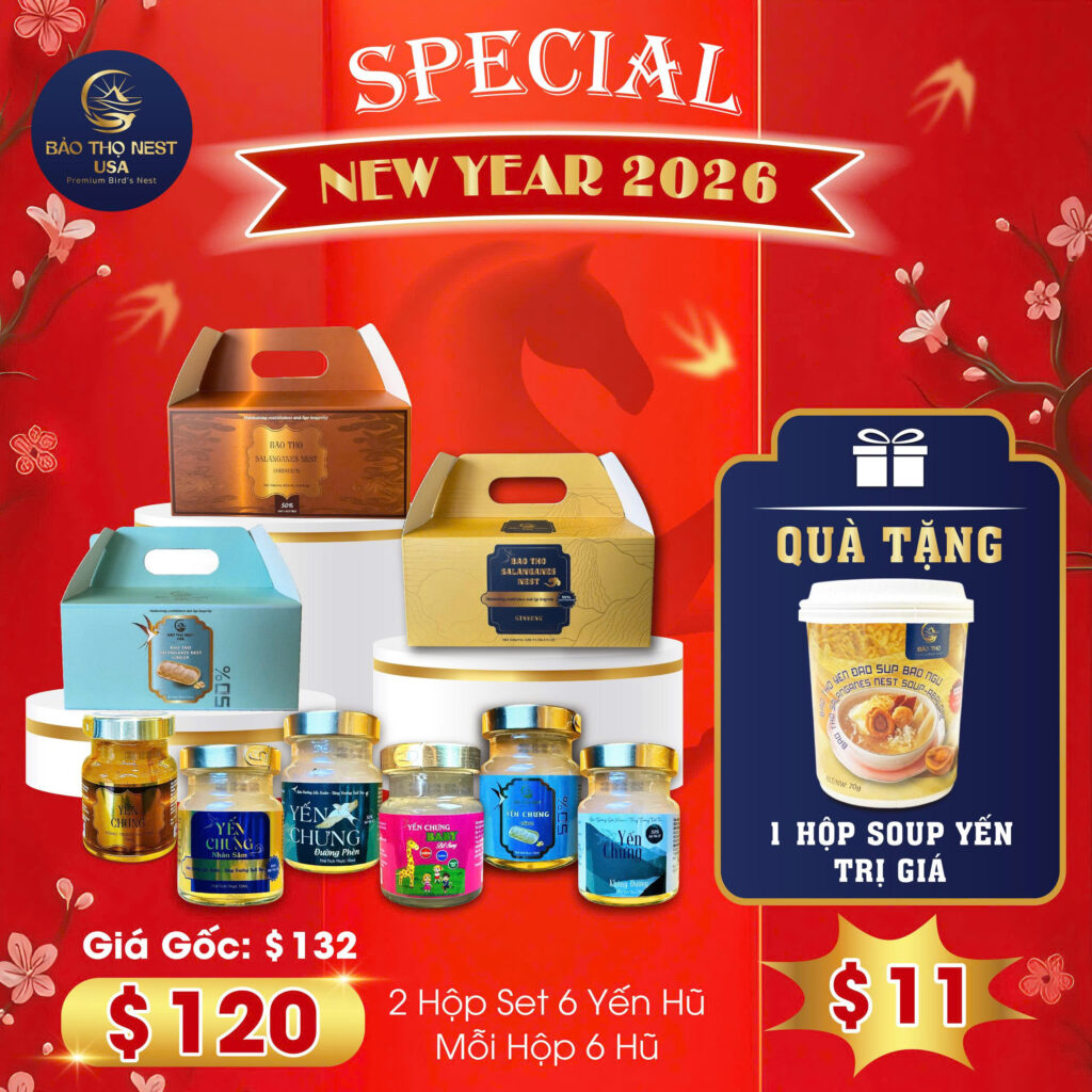 Tết ĐINH NGỌ 2026, ưu đãi 2 hộp Set 6 Yến Hũ $132, nhận ngay quà tặng 1 soup yến $11.