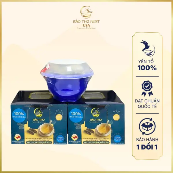 Yến Thố Tự Sôi Bát Trân Vị Hải Sâm Bảo Thọ Nest USA là bí quyết chăm sóc sức khoẻ cho cuộc sống bận rộn. Những tổ yến nguyên chất trải qua khâu tinh tuyển đến công đoạn khử nước với công nghệ sấy thăng hoa hiện đại, từ đó cho ra đời những chén yến bổ dưỡng và thơm ngon chuẩn thượng hạng.