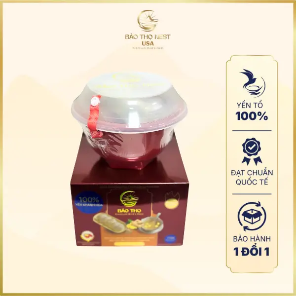 - Sản phẩm đã có chứng chỉ ISO 22000:2018, đạt tiêu chuẩn GMP (TCVN 5603:2023) và được cấp giấy phép kinh doanh yến sào hợp pháp.