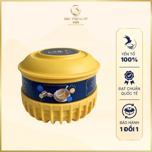 Ứng dụng công nghệ sấy thăng hoa hiện đại suốt 72 giờ, sản phẩm giữ trọn dưỡng chất, màu sắc nguyên bản cùng hương vị tự nhiên tinh khiết. Thiết kế thố xoay sang trọng càng làm nổi bật tính quý hiếm, thích hợp làm món quà sức khỏe cao cấp, gửi trao sự tri ân và phúc lộc viên mãn.