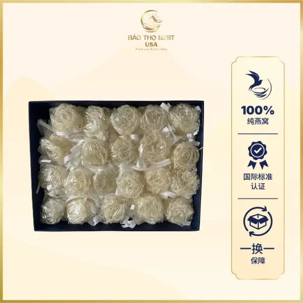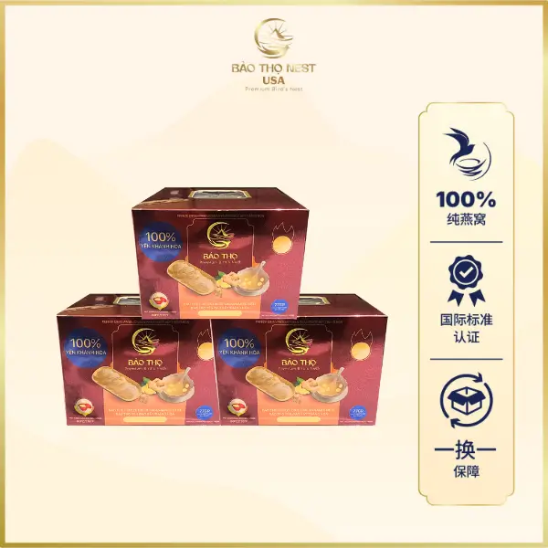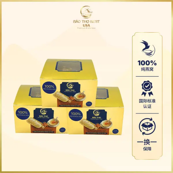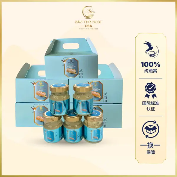 -17 % BAO THO NEST USA 自豪地成为一个深受成千上万客户信赖的燕窝品牌。每一款产品背后,都是一个关于燕窝的故事:它们从外观到品质都经过精挑细选,并由技艺精湛的工匠手工完成清洁工序。通过采用现代技术,最终成品仍能完整保留燕窝最初的天然营养价值。