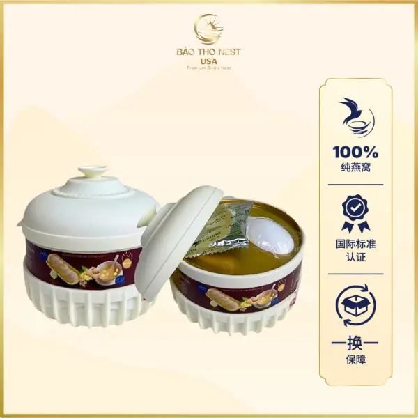 产品已通过 ISO 22000:2018 认证,符合 GMP 标准(TCVN 5603:2023),并获得合法的燕窝经营许可证。