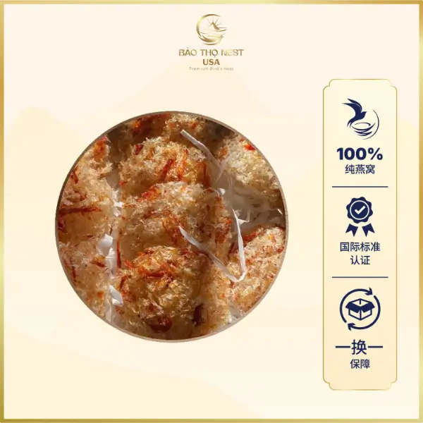 产品营养丰富,适合各类人群使用。每一盏优质燕窝都是大自然馈赠的珍贵礼物,为您和家人提供营养与能量。让我们与 Bảo Thọ Nest USA 燕窝一起守护所爱之人的健康!